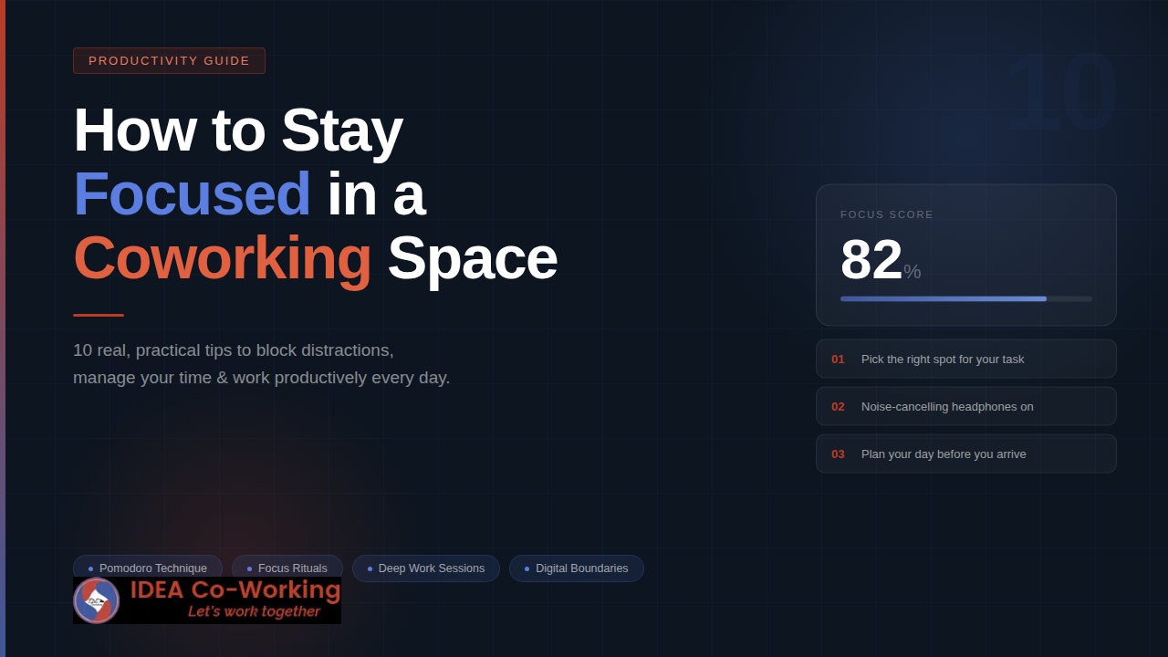 Coworking spaces are genuinely energising places to work. The buzz, the community, the professional atmosphere — it all helps you escape the isolation of working from home or a noisy café. But staying focused in a coworking space is its own skill, and not everyone figures it out on their own.